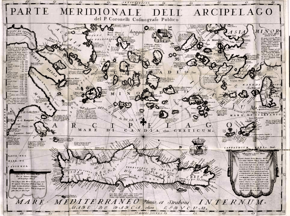 Ben descritta, l'opera del cartografo, cosmografo ed enciclopedista Vincenzo Maria Coronelli (1650 - 1718), con circa 600 tavole appartenenti a: