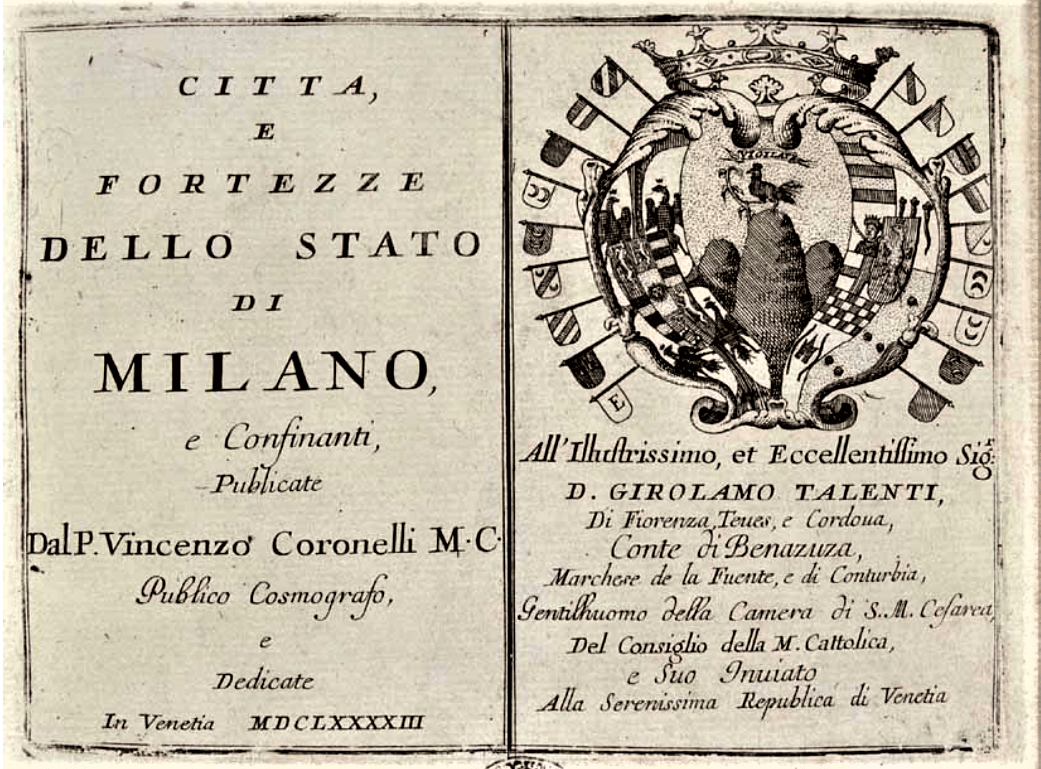 Atlante Veneto, Nel quale si contiene La Descrittione Geografica, Storica, Sacra, Profana, e Politica, Degl'Imperij, Regni, Provincie, e Stati Dell'Universo, Loro Divisione, e Confini, Coll'aggiunta di tutti li Paesi nuovamente scoperti, Accresciuto di molte Tavole Geografiche, non più publicate. Opera, E Studio Del Padre Maestro Coronelli Min: Convent:, Cosmografo della Serenissima Republica, e Professore di Geografia Nell'Università di Venetia, Ad Uso Dell'Accademia Cosmografica Degli Argonauti. - In Venetia : Appresso Domenico Padouani alla Libraria della Geografia, 1690-1700