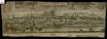 *Regenspurg. - [Germania? : s.n., 16..-17..]. - 1 stampa (2 matrici) : 320 x 953 mm. ((Tit. tratto da iscrizione entro nastro volante in alto al centro. - Esemplare smarginato composto da due matrici incollate l'una all'altra: le dimensioni sono quelle complessive. - In alto a sn. legenda numerata 1-42, in lingua latina, esplicativa dei luoghi indicati sull'immagine. In alto a ds. stemma della città di Regensburg (Ratisbona). In calce è stata incollata una striscia di carta con manoscitta una legenda numerata, parzialmente leggibile, in lingua tedesca.