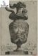 [*Vaso con testa di mostro e festoni] / Polydorvs De Caravagio In. ; Cherub. F. - Romae : [eredi di Cherubino Alberti, 1628]. - 1 stampa : bul. ; 238 x 159 mm. - (Vasi antichi ; 3). ((Indicaz. di inv. tratta dall'iscr. all'interno della parte figurata. Per il tit., cfr. TIB, 34, 1982, p. 294, n. 163 (110). - L'esempl., esec. nel 1582, è con probabilità rieditato nel 1628, dopo aver ottenuto il privilegio del pontefice, per cura di Lattanzio Pichi, genero dell'Alberti, insieme ad altri 30 rami proprietà degli eredi dell'intagliatore, cfr. Bartsch, XVII, 1818, p. 46; Servolini, cit., p. 764: la fonte è una lettera dello stesso Pichi al cav. del Pozzo. Tiratura debole. Per altre valutazioni sullo stato della tavola, cfr. scheda di serie. Il rame è conservato alla Calcografia Nazionale (Roma), cfr. Petrucci, 1953, p. 12, n. 1793-30. - Per il tit. della serie, cfr. TIB, 34, 1982, p. 292, n. 161 (110). - La suite traduce i vasi parte dei freschi del fregio del secondo piano eseguiti da Polidoro da Caravaggio per la facciata di Palazzo Milesi (Roma), cfr. Marabottini, I, 1969, pp. 366-367; II, pp. CXLVII-CLIII.