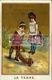 *E. Guesquin : La terre / [Association d'Editeurs de Chromos, Paris]. - [Paris : Association d'Editeurs de Chromos, 1894-1910]. - 1 figurina : cromolitografia; 67x44 mm. - Per il nome dell'A. e dell'Ed. cfr. WELD P13 AS2-4. Data da comunicazione orale della Sig.na Lucilla de Magistris.