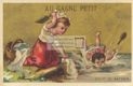 Au *Gagne Petit : Coup de Battoir / Courbe-Rouzet, imp.-édit., Dôle et Paris, 23, Rue d' Hauteville. - Dôle ; Paris : Courbe-Rouzet, imp.-édit., 23, Rue d' Hauteville, [1881-1889]. - 1 figurina : cromolitografia ; 65x100 mm. - Nome dell'A. e dell'Ed. al verso. Per le date cfr. WELD P2 CR3-4-9.