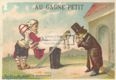 Au *Gagne Petit : Chez un honnête marchand : 9 / Courbe-Rouzet, imp.-édit., Dôle et Paris, 23, Rue d' Hauteville. - Dôle ; Paris : Courbe-Rouzet, imp.-édit., 23, Rue d' Hauteville, [1881-1889]. - 1 figurina : cromolitografia ; 64x95 mm. - Nome dell'A. e dell'Ed. al verso. Per le date cfr. WELD P2 CR3-4-31.