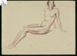 [*Nudo femminile seduto con girocollo di perle] / R.B. - 1933. - 1 disegno : pastello rosso pompeiano con rialzi a matita di grafite ; 320x442 mm. - Tit. del cat. Iniziali dell'A. e data di esec. autografe in bs. a ds., a matita rosso carminio. Nel verso, timbro a inchiostro del Museo e il vecchio inv. 423. Carta avorio.