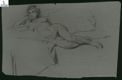 [*Nudo femminile disteso sul fianco ds. con il capo appoggiato al braccio / Renato Brozzi]. - [1906-1915]. - 1 disegno : carboncino ; 330x554 mm. - Tit., A. e data di esec. del cat. Nel verso, timbro a inchiostro del Museo e il vecchio inv. 681. Carta grigia tagliata irregolarmente lungo il margine inferiore.