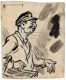[*Menini. - 1901]. - 1 disegno : matita di grafite, china e biacca ; 150 x 138 mm. ((L'effigiato era un notissimo venditore di bignè al mercato cittadino bolognese, trasferito in piazza VIII Agosto nel 1888, cfr. Nasica, 1968, p. 36. - Per la data di esecuzione, cfr. l'anno in cui il disegno è stato pubblicato all'interno della rubrica "Intermezzi e resti", sulla prima pagina de "Il Resto del Carlino", del 16-17 settembre 1901, n. 259, ad illustrazione dell'articolo "Liquoreria tribunalizia". All'interno dell'articolo Menini veniva intervistato a proposito del processo Palizzolo. - Al verso frammento di caricatura, probabilmente dello stesso soggetto al recto.