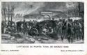 L'*attacco di Porta Tosa, 22 marzo 1848 / Dipinto di L. Burlando ; [Anonimo]. - Milano : Ediz. Clamor di D. Gualtieri, [1923]. - 1 cartolina postale : tipografia ; 93 x 143 mm. ((Tit. e A. da iscr. in calce all'immagine. - La pubbl. è desunta da iscr. sul verso, la d. è desunta dall'iscr. sul verso "75° anniversario delle Cinque Giornate di Milano" e confermata dall'annullo postale. - Il dipinto che illustra la cartolina è conservato presso il "Museo dei Risorgimento in Milano", come da iscr. sul recto. Esempl. spedito a Bona Paolo di Roma.