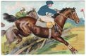 [*Fantini a cavallo saltano un ostacolo] / T[...] Thiele. - New York : Illustrated Post Card Co. New York-Germany, [ca. 1910]. - 1 cartolina postale : cromolitografia ; 91x140 mm. ((Titolo del catalogatore. Nome dell'autore, parzialmente decifrabile, da firma facsimilare a stampa sul recto. - Data da timbro postale. - Esemplare goffrato con particolare della divisa del fantino stampata su seta.