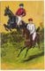 [*Due fantini a cavallo durante una corsa ad ostacoli / Anonimo]. - [S.l. : s.n., ca. 1900]. - 1 cartolina postale : cromolitografia ; 92x140 mm. ((Titolo del catalogatore. - Data del catalogatore sulla base di elementi stilistici e grafici della cartolina, antecedente all'adozione in Europa del divided back. - Sul verso la dicitura "Cartolina postale" è tradotta in diverse lingue.