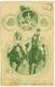 [*Spettatrice alle corse osserva con il cannocchiale due fantini a cavallo / Anonimo]. - [S.l. : s.n., ca. 1904]. - 1 cartolina postale : litografia(?) ; 88x140 mm. ((Titolo del catalogatore. - Data da timbro postale sul verso. - Sul verso la dicitura "Postkarte" è tradotta in diverse lingue. - Sul verso a stampa numero seriale "Nr. 213". - Le immagini sul recto sono incorniciate da ferri di cavallo.