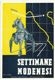 *Settimane Modenesi / Mario Molinari. - [Modena] : Stabilimento Poligrafico Artioli, 1940. - 1 cartolina postale : tipografia ; 157x100 mm. ((Titolo a stampa sul recto della cartolina. Autore da iscrizione facsimilare sul disegno presente sul recto. - Data a stampa sul recto della cartolina "Settimane Modenesi A. XVIII, 21 Aprile - 12 Maggio 1940". - Sul verso a stampa il nome del committente "Società Modenese per Esposizione Fiera e Corse Cavalli (riconosciuta dall'E.N.C.T. - U.N.I.R.E.), Modena Corso Canalgrande 64 - Telef. 33-11" ed un breve calendario con le date delle corse e delle esposizioni previste.