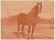 *Ciano, Razza Bretone ma pesante e robusto, Sauro arabicanato con stella in fronte prolungata, Alto m. 1,54, Pesa q.li 7,50, Tasso di Monta L. / [Anonimo]. - [S.l. : s.n., ca. 1906-1940]. - 1 cartolina postale : tipografia ; 100x140 mm. ((Titolo a stampa sul verso della cartolina. - Data del catalogatore, posteriore all'introduzione in Italia del divided back. - Sul verso a stampa "Annata 194" ed il nome del committente "Stazione Ippica Fratelli Tioli, Concordia (Modena)". - Immagine virata al rosso.