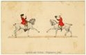 [Un *uomo e una donna a cavallo si salutano / Anonimo]. - [S.l.] : OPF, [ca. 1905-1940]. - 1 cartolina postale : cromolitografia ; 90x140 mm. ((Titolodel catalogatore. - Il logo grafico con trifoglio contenente le iniziali "OPF", a stampa in calce al verso, è riconducibile all'editore tedesco "Osnabrucker Papierwaaren Fabrik". Segue l'indicazione di pubblicazione la dicitura "Ges. gesch. - Déposé". Data del catalogatore, posteriore all'introduzione in Germania del divided back. - Esemplare goffrato.
