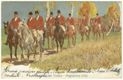 [*Scena di caccia a cavallo] / A. Hoffmann, Munchen. - [Munchen] : H. K. & Co., [ca. 1908?]. - 1 cartolina postale : cromolitografia ; 90x140 mm. ((Titolo del catalogatore. Autore da firma facsimilare sul recto. - Il logo grafico rappresentato da una tavolozza con all'interno le iniziali "H. K. & Co. M." è riconducibile all'editore tedesco Hubert Kobler di Monaco. In calce al verso, a stampa, "Serie 291". Data da timbro postale sul verso, scarsamente leggibile. - Sul verso dicitura "Postkarte" tradotta in diverse lingue.