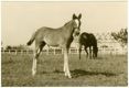 [Il *cavallo Probation ed una puledra dell'Allevamento Gibi a Castelletto sopra Ticino / Anonimo]. - [Esec. 1880-1950]. - 1 fotografia : gelatina a sviluppo ; 112x166 mm. ((Titolo del catalogatore, sulla base delle indicazioni manoscritte sul verso della fotografia e del timbro ad inchiostro in calce al verso "Allevamento Gibi Castelletto Ticino/Aronco". - Data di esecuzione del catalogatore, sulla base della tecnica utilizzata.