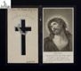 *Ego sum resurrectio et vita ... : [onoranze funebri per Giuseppe Visani]. - [Milano? : Bertarelli?, 1900-1925] ([Castel Bolognese : Tip. Cavallazzi, 1925]). - 1 stampa : cromolitografia ; 112 x 132 mm. ((Dati di edizione da confronto con esempi di Bertarelli. Dati di stampa da informazioni all'interno del pieghevole. - Cromolitografia a 4 colori (grisaille). Dimensioni del pieghevole aperto.- Numero d'inventario da catalogo dell'editore: 743. Serie D. Esemplare in controparte rispetto a quello pubblicato in: "Figurine!..., Modena, Panini, 1989, p. 70, fig. 98". Sul quarto del pieghevole, croce a cromolitografia e scritta: Spes unica.