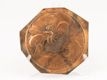 *Targhetta con rovescio della moneta da 50 [i.e. 10] cent. / Renato Brozzi. - Esecuzione 1918. - 1 targhetta : lamina di rame sbalzato ; diam. 14,5 cm. ((La targhetta in lamina di rame sbalzato riprende il verso della moneta da 10 centesimi in rame, modificando il nominale in cent. 50. - Nel 1919, a pochi mesi dalla fine del Primo conflitto mondiale, Renato Brozzi vince il concorso bandito dalla Zecca per rinnovare tutti i tipi dei pezzi in metallo, proponendo questo soggetto per il rovescio della moneta da 10 centesimi, cfr. CNI - Circolo Culturale Numismatica Italiana, Catalogo Regno d’Italia (1900-1943) [R. Decreto n° 1618 del 4 settembre 1919] https://ccninumismaticaitaliana.it/catalogo_regno_d_italia_1900-1943_11/. La raffigurazione del rovescio, è così descritta: “Ape poggiata su fiore di papavero che copre la quasi totalità del campo. A destra indicazione del nominale C • 10. Sotto l'ape simbolo di zecca R, in basso data e a destra lungo il bordo firma modellista R. BROZZI”. - Coniata dalla Regia Zecca di Roma in rame a 950 millesimi, con diametro di 22,50-22,60 millimetri e peso di 5,30-5,50 grammi, la monetina, che i numismatici identificano come “tipo Ape”, ha il bordo liscio e, complessivamente, è stata prodotta per tutto il periodo 1919-1937. |